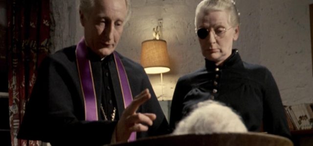 • The Villain: Anthony Sharp delivers a haunting performance as the soft-spoken yet terrifying Father Meldrum.